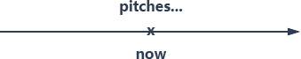 播报运动比赛时,常会用到一连串的现在简单式。像这些句子,虽然没有交代时间副词,可是很明显每一句都是现在发生的,也就是 now。播报员所播报的一直是现在这一刻所发生的事情,所以就是 now 这一瞬间,也就是最小的括弧。只要是括弧就是简单式,所以是现在简单式。