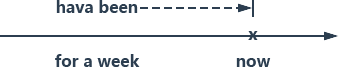 把 be 动词当做动词看,那么再复杂的动词时态也只剩下两种变化,不是简单式就是完成式。这里用完成式,因为时间副词 for a week 是“到现在,算算有一个星期之久了”,这时候重点在于“算到现在已经有……了”,所以强调的是截止时间,是箭头形状的时间,要用完成式“已经”来配合,所以动词用 have been。后面的补语 working 是现在分词,表示持续性,也就是“一直在加班”,用来形容主语“我们”。动词 have been 是 be 动词,不必翻译,只要解释完成式的部分“已经”和时间副词“有一个星期”就可以了。
