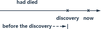 盘尼西林在 1928 年发现,可是这个句子的时间副词不是 in 1928 一个括弧,而是 before the discovery of penicillin,也就是 before 1928,是一个以 1928 年为截止时间的箭头形状,所以要用过去时间的完成式 had died。换句话说,这个句子说到的士兵从古罗马时代,一直到一次大战都可以算在里面,但 1928 年之后的就不算了,因为盘尼西林已经发现了。这就是过去完成式的条件。