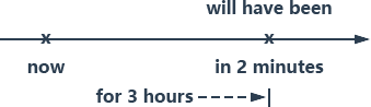 - 例: In two more minutes , she will have been talking on the phone for three hours ! (再过两分钟,她就一直打了足足三小时的电话了!)